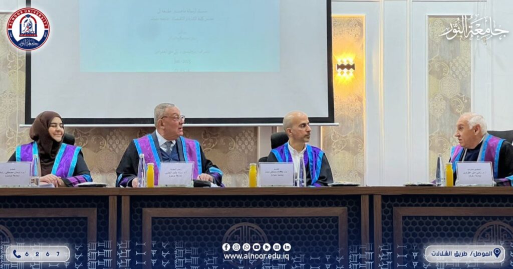 ترأس الأستاذ الدكتور أياد بشير عبد القادر الچلبي، التدريسي في كلية التقنيات الإدارية بجامعة النور، لجنة مناقشة رسالة طالب الدراسات